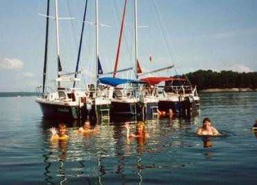 A variation of out Theme: The Big Boats sail from A to B, rarely from E to F. The Rhodes sails wherever it wants. . . thanks to the Rhodes so easy-to-use Uni-Matic trailers.